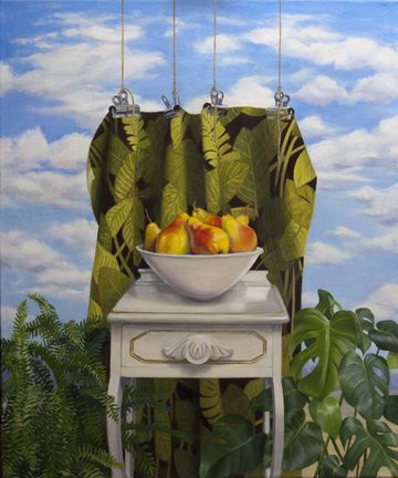 Green Curtain by Jean Reece Wilkey, oil on canvas, 36 x 30 inches