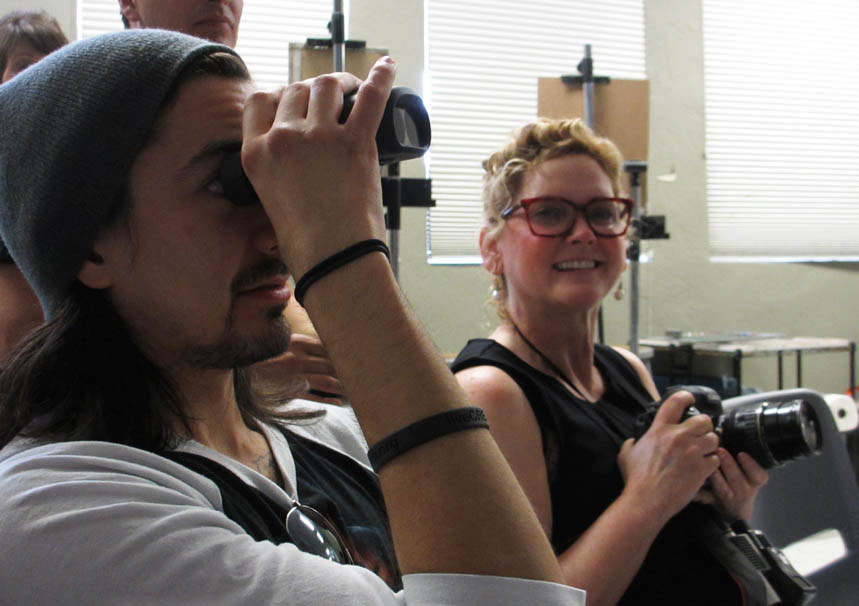I was skeptical about spending the money for close focus binoculars and tried my birding binoculars, but they didn’t work in the same way. So I got the Pentax Papilio binoculars David uses and I’m glad I did. They’re very close focus – 6.5 feet to 21 feet and work well for seeing the detail in the model’s face without having to actually get in her face! I use them all the time now.