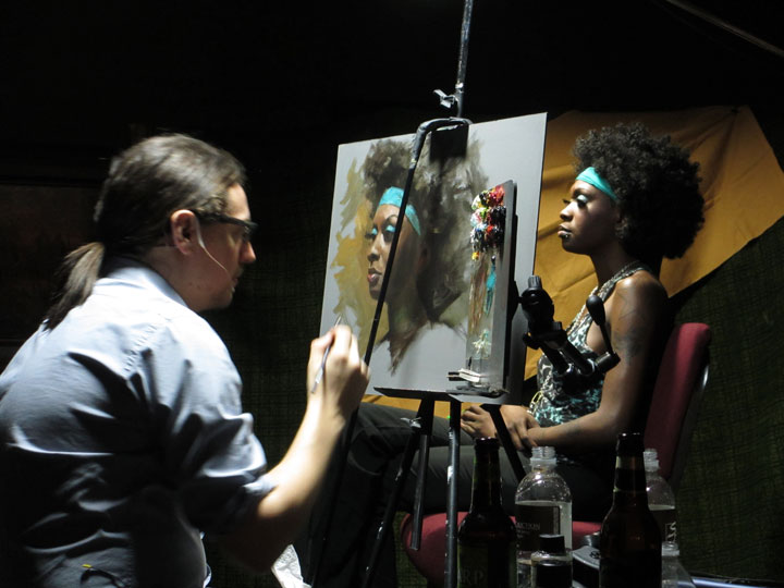 David is great at sharing information, both about the painting process and general aspects of an artist’s life. He keeps up an ongoing banter while he draws or paints, as if the process were automatic and he didn’t need to pay attention. We fired questions at him the entire time, which he happily answered, and of course he also told us jokes. Duh…