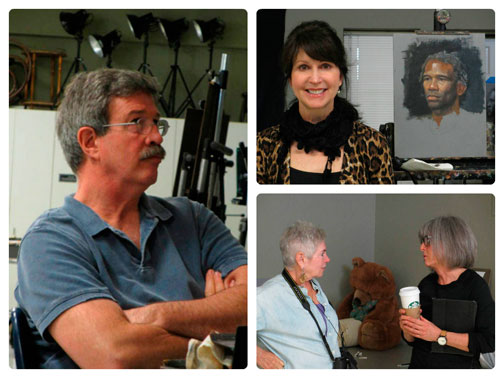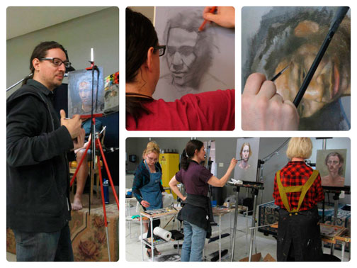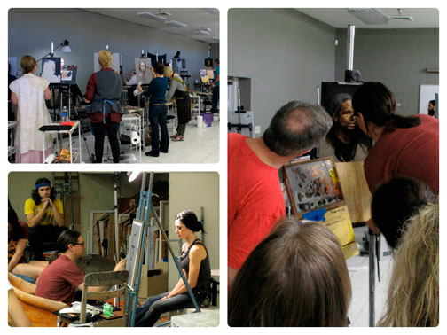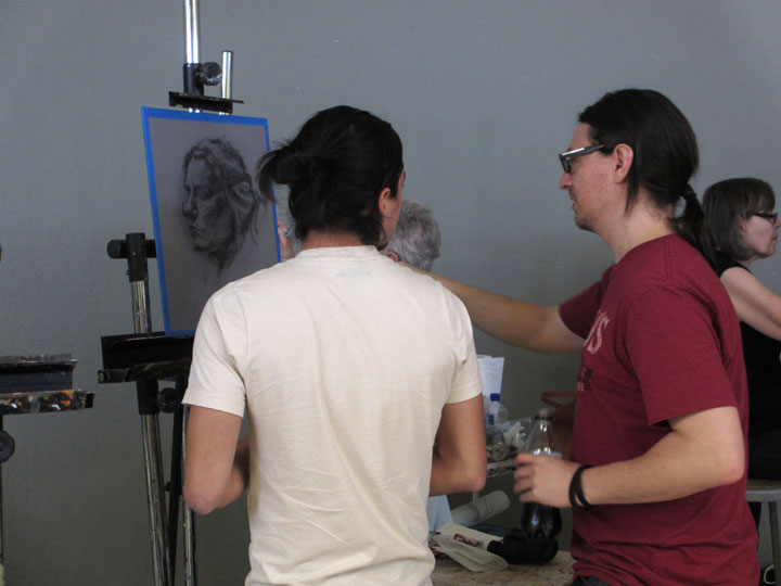 Every morning David did a demo and in the afternoon the participants worked from the model. His process involved doing a detailed drawing of the model and transferring it to the canvas to paint. The first day he drew the model, John, and spent the remainder of the time painting him.