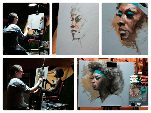 David has recently set up the Kassan Foundation to benefit students in the visual arts and music. (You can donate here.) The first night of the workshop was a demo-fundraiser for the foundation at the Legacy gallery. Here are some images showing the progression of that painting demo.